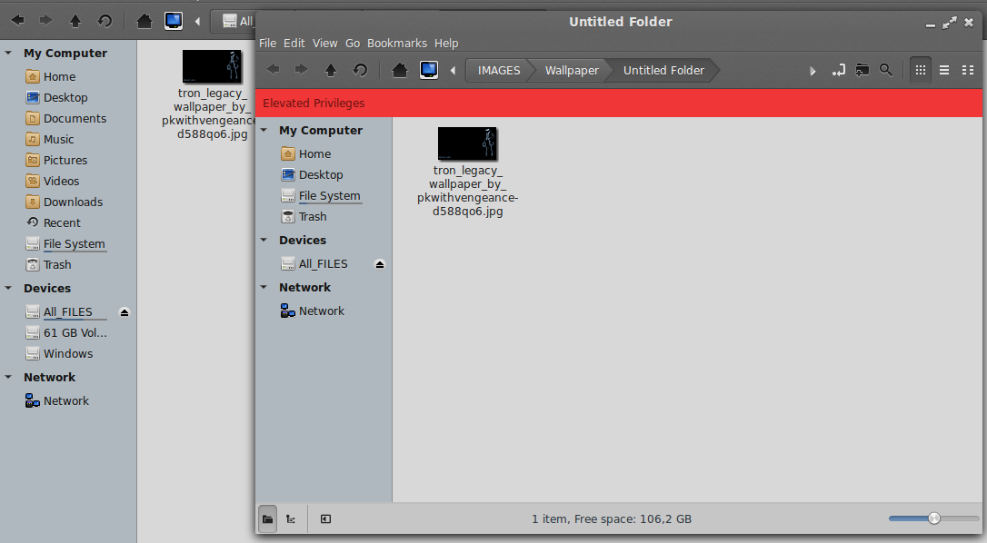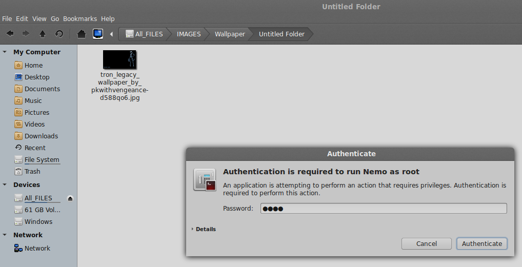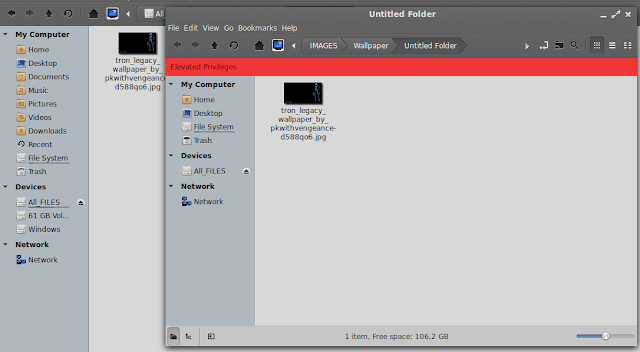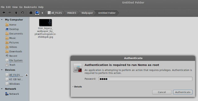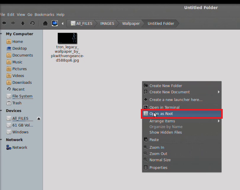 - Pastikan anda berada di tempat Gambar yang ingin anda jadikan sebagai Background Grub, kilk kanan di lokasi tersebut Pilih dan klik Open As Root