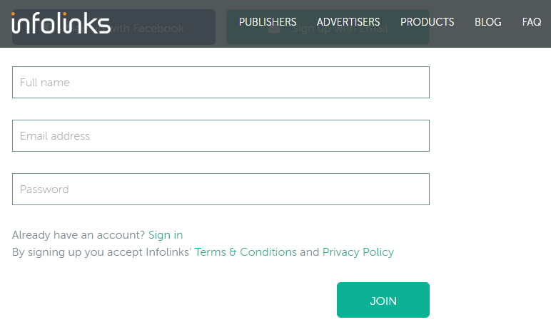 Setelah syarat atau kriteria yang diminta oleh infolinks sudah dipenuhi, maka sekarang Anda bisa melakukan proses pendaftaran menjadi publisher Infolinks.