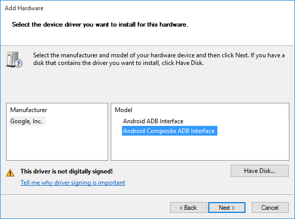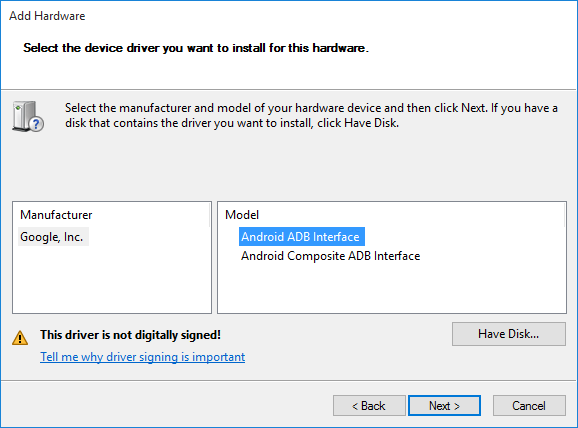 - On this window, select the Android ADB Interface and click Next