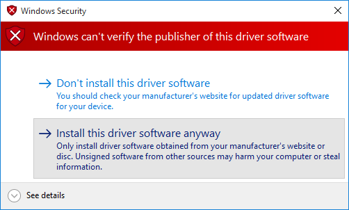 - Once the process starts running, will display options and select Install this driver software anyway