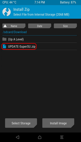 - After that, now navigate to the file UPDATE-SuperSU.zip existing on Internal memory.