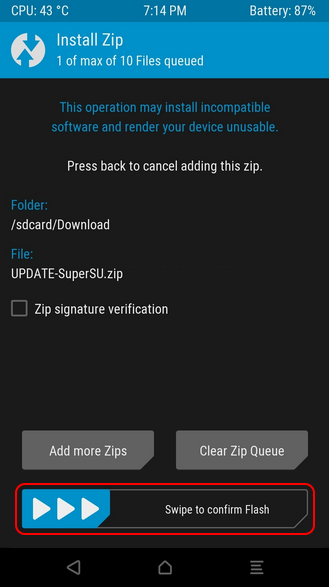 - If you have selected the file UPDATE-SuperSU.zip, it will display a verification of whether you will do Flashing. Caution: If you choose to do Flashing, then indirectly you are already receiving a wide variety of risks that will occur on your Xiaomi Mi 4c device, such as Bootloop, Brick or other risks.