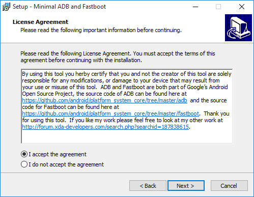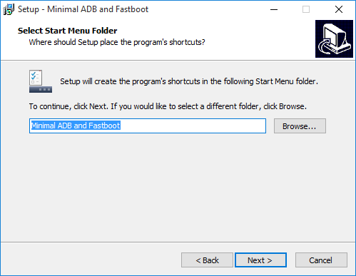 - Click Next to create a Minimal ADB and Fastboot is also located in the Start Menu Click