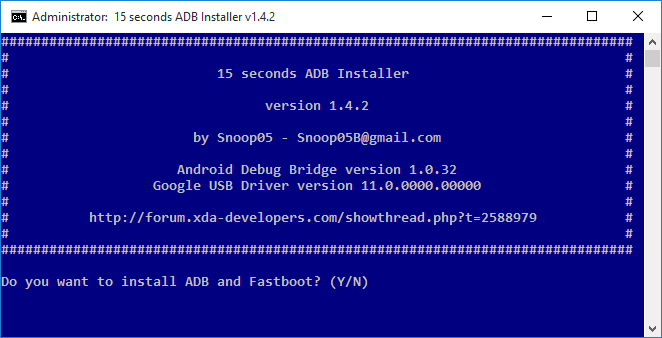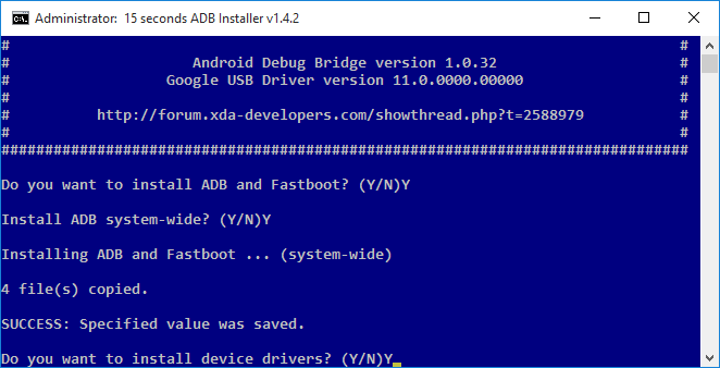 - Press Y/Yes to install ADB and Fastboot or N/No to skip