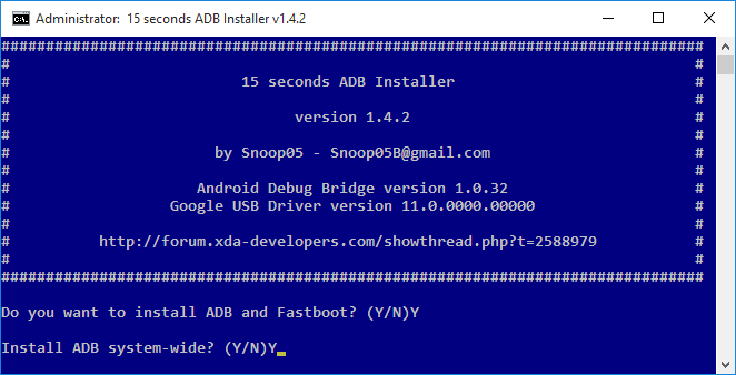 - Press Y/Yes to install ADB system-wide or N/No for current user only