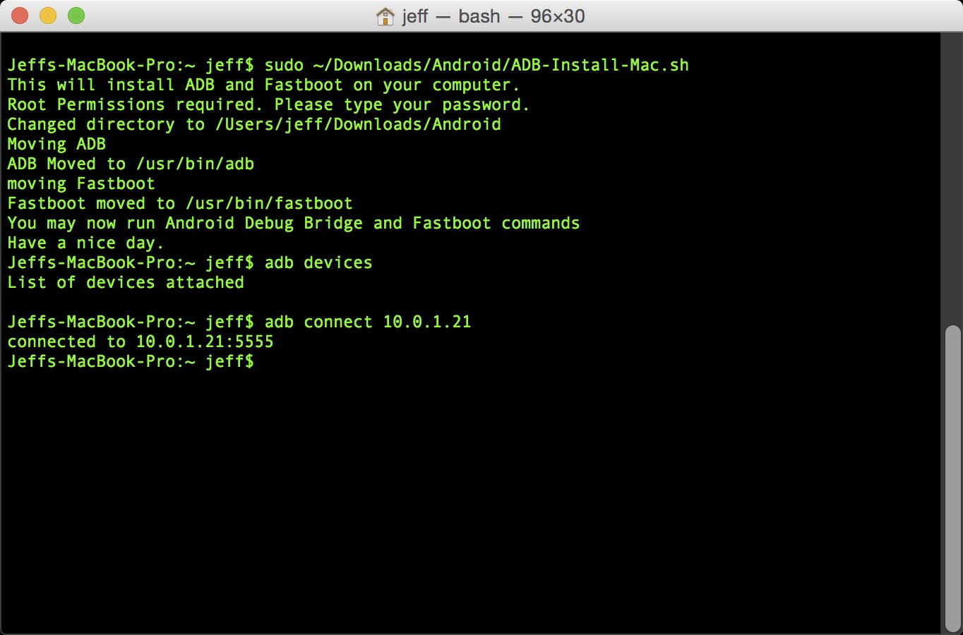 - Extract the file and Run ADB-Install-Mac.sh from Terminal (/Applications/Utilities/Terminal.app) and then restart Terminal. If you wish to uninstall, simply run Uninstall-ADB.sh ADB and Fastboot will be moved to /usr/bin/