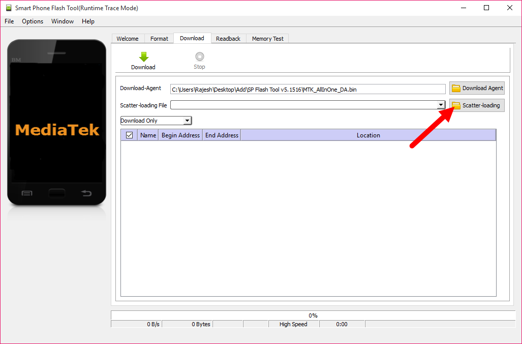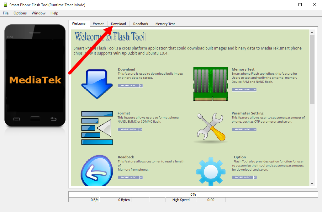 - A window will appear Smart Phone Flash Tool, then click on the Download tab.