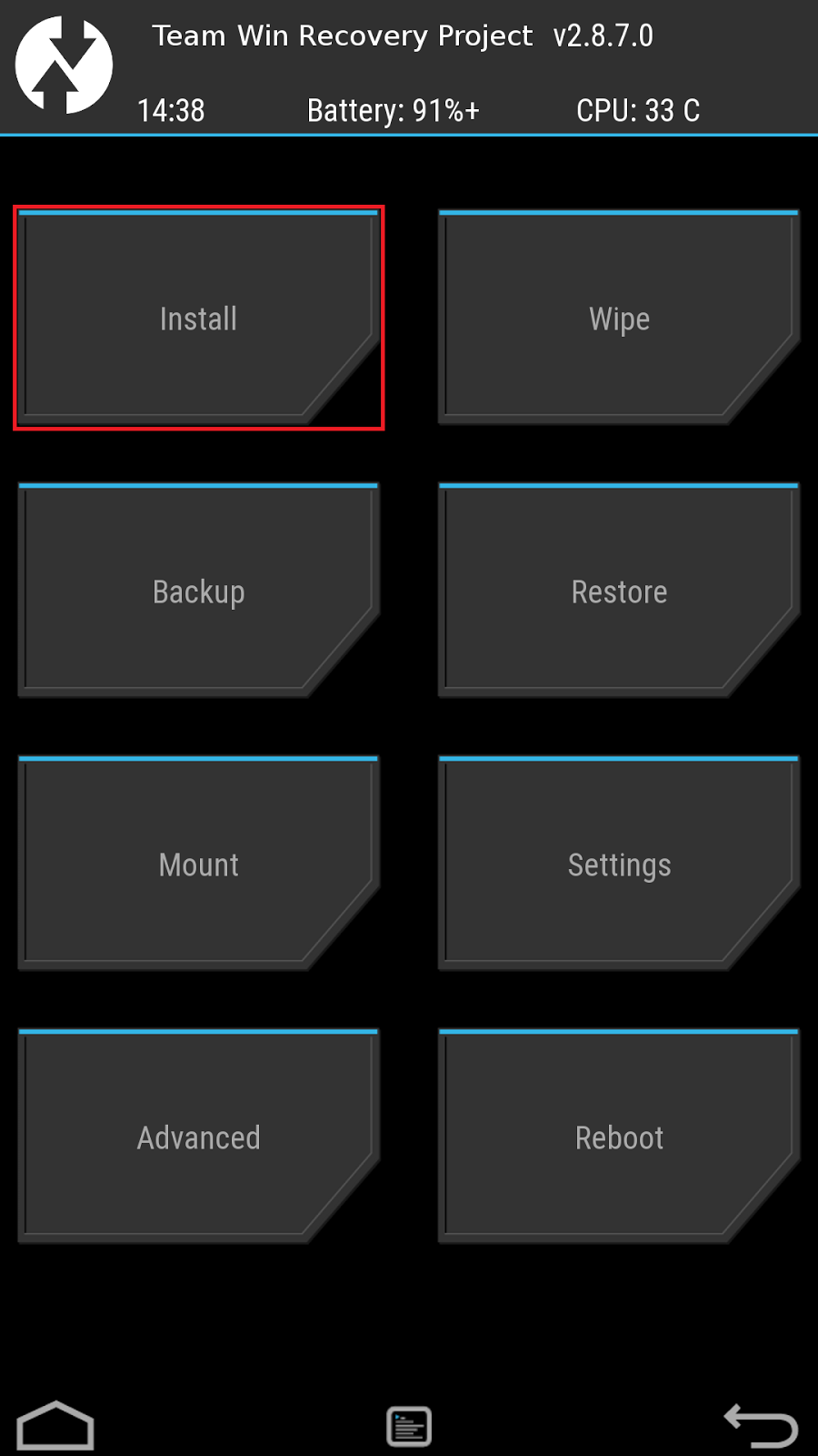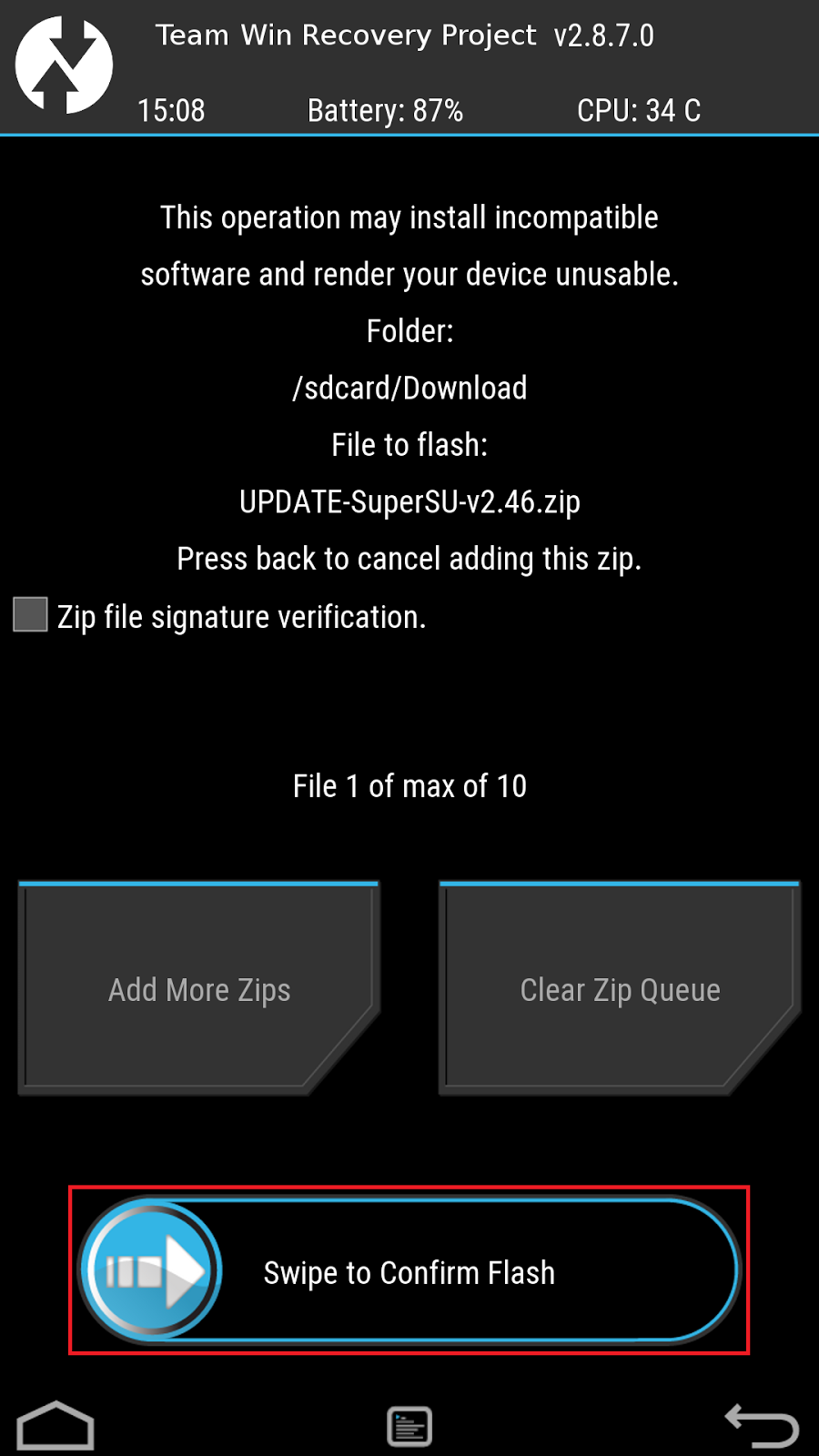 - Now, select "Install" and navigate to UPDATE-SuperSU.zip.