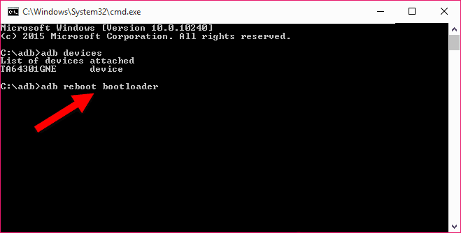- Still on the Command Prompt window, type the command: adb reboot bootloader